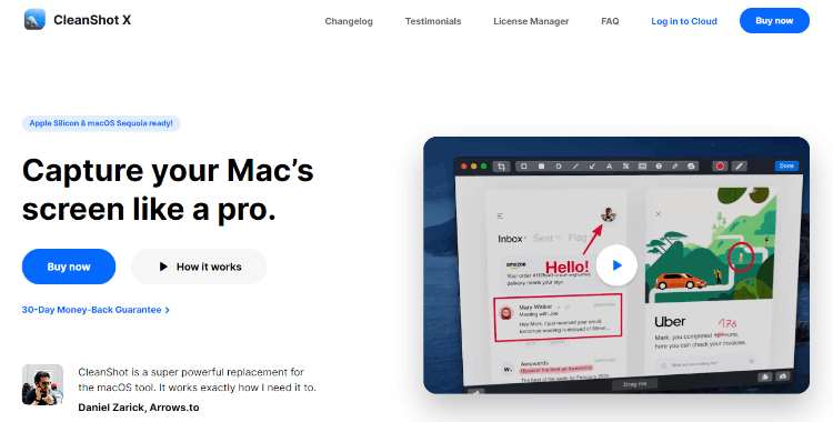 CleanShot X 是一款功能强大的截图和屏幕录制工具,适用于 Mac 用户。它允许您捕获屏幕截图、录制视频并轻松对其进行注释。使用内置的 CleanShot 编辑器,您可以突出显示或隐藏镜头的某些部分,并在必要时添加评论。要立即编辑屏幕截图,只需单击“快速访问叠加”菜单中的铅笔图标即可。